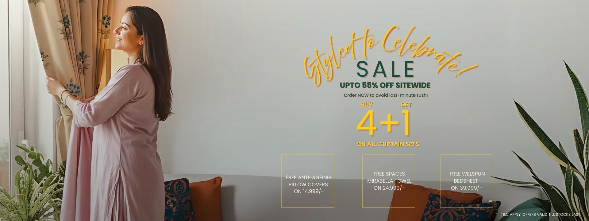 Anti-Ageing Pillow Covers FREE on ₹14,999 + Extra 5% Off |Mirabella Towel FREE on ₹24,999 + Extra 7% Off | Welspun Bedsheet FREE on ₹39,999 + Extra 10% OffAnti-Ageing Pillow Covers FREE on ₹14,999 + Extra 5% Off |Mirabella Towel FREE on ₹24,999 + Extra 7% Off | Welspun Bedsheet FREE on ₹39,999 + Extra 10% Off